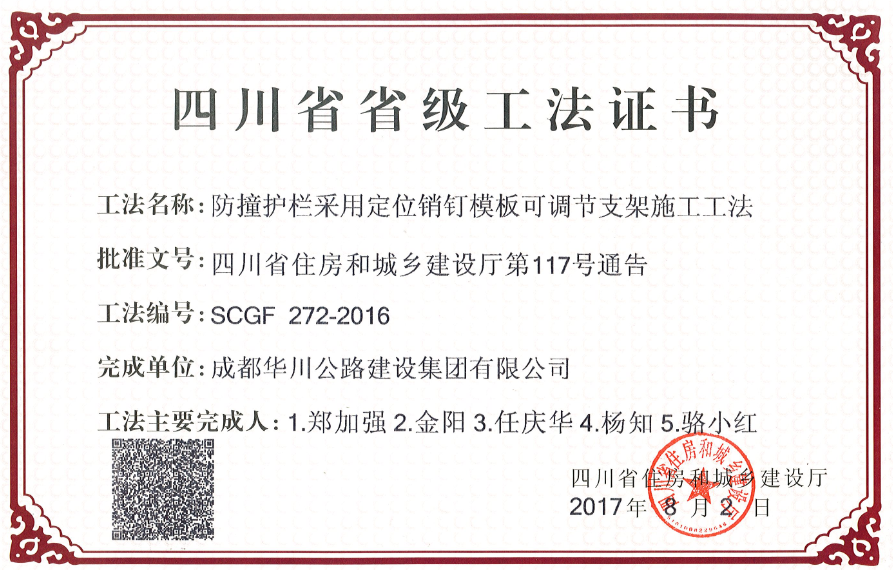 8月21日,經(jīng)四川省住房和城鄉(xiāng)建設(shè)廳公示并下發(fā)2016年度四川省工程建設(shè)省級(jí)工法證書,集團(tuán)2016年度申報(bào)的三項(xiàng)工法,均被認(rèn)定為四川省