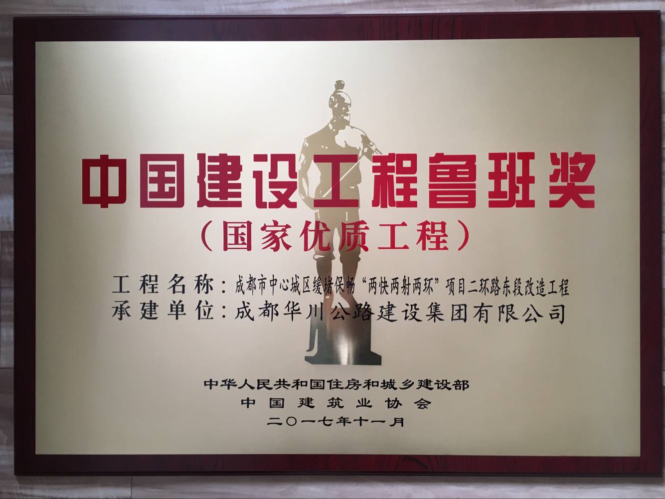 11月5日至7日,紀(jì)念魯班獎創(chuàng)立30周年暨2016~2017年度創(chuàng)精品工程交流會在北京舉行,會上宣讀了《住房和城鄉(xiāng)建設(shè)部關(guān)于2016~2017年度中國建設(shè)工程魯班獎(國家優(yōu)質(zhì)工程)獲獎單位的通報》,集團(tuán)承建的“成都市中心城區(qū)緩堵保暢‘兩快兩射兩環(huán)’項目二環(huán)路東段改造工程”榮獲2016~2017年度中國建設(shè)工程魯班獎。