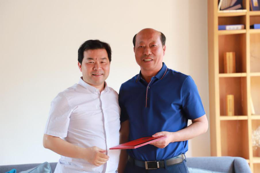 集團(tuán)董事長(zhǎng)謝應(yīng)文接見(jiàn)并授牌五常市農(nóng)業(yè)局局長(zhǎng)伊彥臣為“北稻南種”項(xiàng)目首席顧問(wèn)
