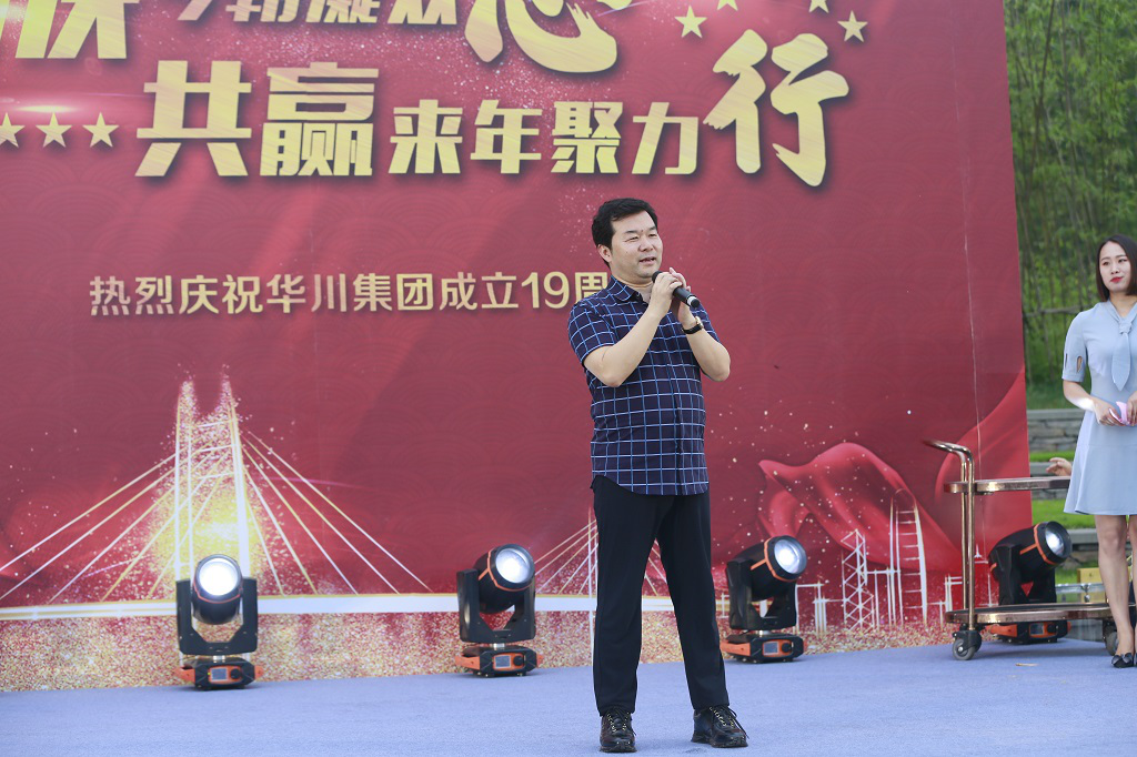 晚上,農(nóng)業(yè)總部基地?zé)艋痨陟冢瘓F19周年慶典晚會在這里舉行。作為十九周年與二十周年的連接節(jié)點,今晚過后將迎來集團成立二十周年華誕,黨委副書記發(fā)布《關(guān)于慶祝集團成立二十周年氛圍營造工作的通知》,副總裁熊文發(fā)布《休養(yǎng)度假專項福利方案》。發(fā)布會后,一曲《盛世華誕》鼓舞劃破夜空,激烈昂揚鼓聲將拉開了慶典的序幕。《今天是你的生日》,通過詞語改編,為集團送上了美好的生日祝福;群舞《別樣風(fēng)華》,通過集團女干部與文工團溫婉柔美,猶如一幅曼妙的畫卷;朗誦加合唱的節(jié)目《華川力量》,字字鏗鏘,展示出華川人血脈里流淌的豪邁情懷和磅礴的力量。伴隨著晚風(fēng)習(xí)習(xí),周年慶典進入尾聲,在《華川之歌》的歌聲中,大家自發(fā)走上舞臺,齊聲合唱,伴隨著熟悉的曲調(diào),大家連連歡呼,為本次慶典劃上了圓滿的句號。