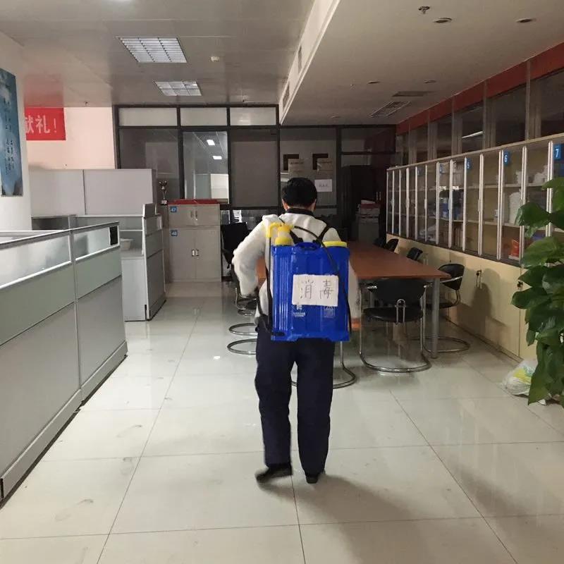安排專人每日對(duì)集團(tuán)辦公大樓進(jìn)行徹底消毒,其中電梯轎廂(含內(nèi)外按鍵)每小時(shí)消毒一次;一樓大廳、衛(wèi)生間每小時(shí)消毒一次;其他區(qū)域每天消毒兩次;會(huì)議室使用完后立即消毒(原則上各單位、各部門均采用視頻會(huì)議,避免人員聚集);食堂每天消毒一次。為了確保消防安全,辦公區(qū)域內(nèi)嚴(yán)禁以噴灑酒精的方式進(jìn)行消毒,均采用抹布蘸取酒精擦拭。
