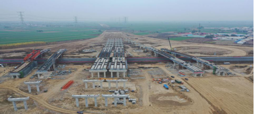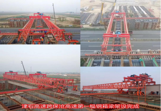 辛留佐樞紐互通位于高陽縣辛留佐村東,是津石高速全線僅有的三座跨接高速施工樞紐互通之一,主要用于津石高速與保滄高速交通流相互轉(zhuǎn)換,互通型式采用變形苜蓿葉加半直連式匝道,設(shè)計主線和11處匝道,分別上跨保滄高速5次,互通區(qū)內(nèi)設(shè)置主線橋500米/1座,匝道橋940米/4座,通道涵洞10道。鋼箱梁跨徑60米,橋梁下部結(jié)構(gòu)均設(shè)計在保滄高速路基坡腳兩側(cè),該互通上跨部分均為鋼結(jié)構(gòu)箱梁,共計14片,需要14次跨越保滄高速進(jìn)行架設(shè),其中鋼結(jié)構(gòu)箱梁最大長度為35米,總量101噸,由于要上跨河北省正在運行的交通主干道保滄高速公路進(jìn)行施工,該項工作更是成為了津石高速JSLQ5標(biāo)的年度重點工作,同時也備受各方關(guān)注。