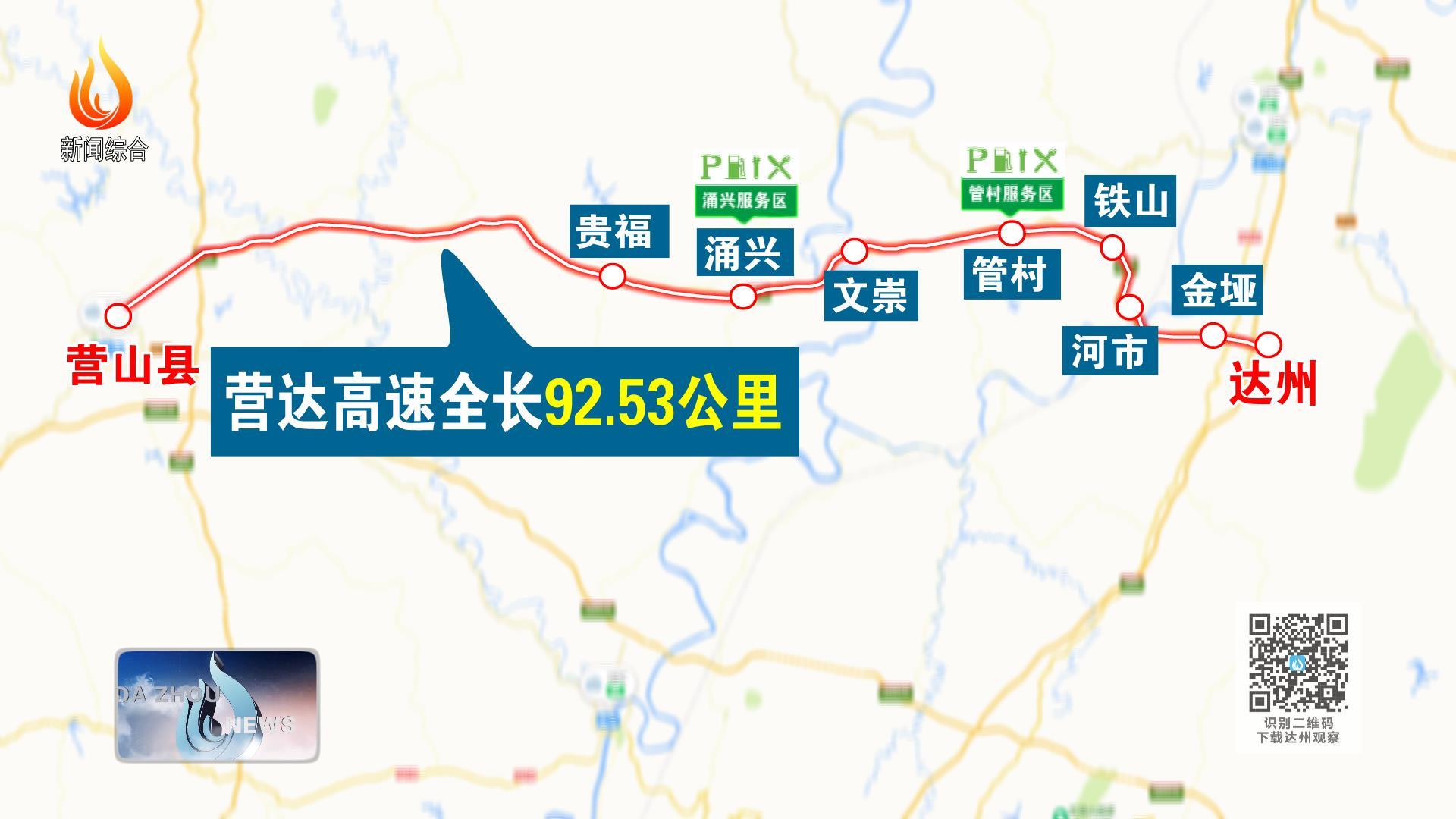 營達高速全長92.53公里,達州境內(nèi)設(shè)貴福、涌興、文崇、管村、鐵山、河市、金埡七個收費站和涌興、管村兩對服務(wù)區(qū)。